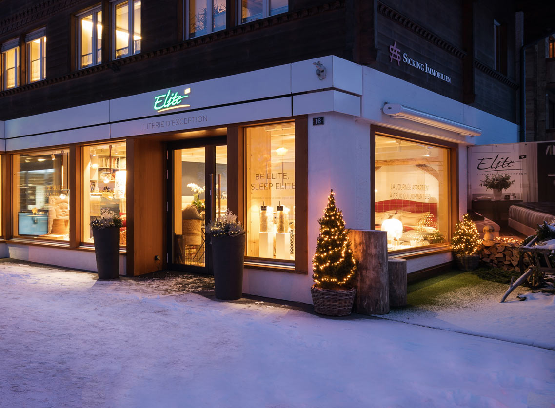 Idéalement situé à quelques pas de l’Eisbahn Gstaad, l’Elite Gallery Gstaad est niché dans un quartier animé du centre du village. Parce qu’Elite n’a de cesse de vouloir offrir le meilleur conseil personnalisé, nos sleep coaches se tiennent à votre entière disposition afin de répondre à vos interrogations et déterminer avec vous le matelas idéal correspondant à votre morphologie et à vos habitudes de repos. Notre savoir-faire unique en Suisse et nos artisans spécialisés sont au service de vos envies créatives et de vos besoins physiologiques dans la fabrication de produits sur-mesure parfaitement adaptés à votre santé et à votre bien-être, et s’intégrant harmonieusement à votre chambre à coucher.